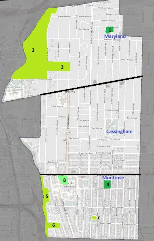 Cassingham: 70% reduction of the outdoor playfield for approximately 500 elementary students (and shared with Bexley MS and HS).